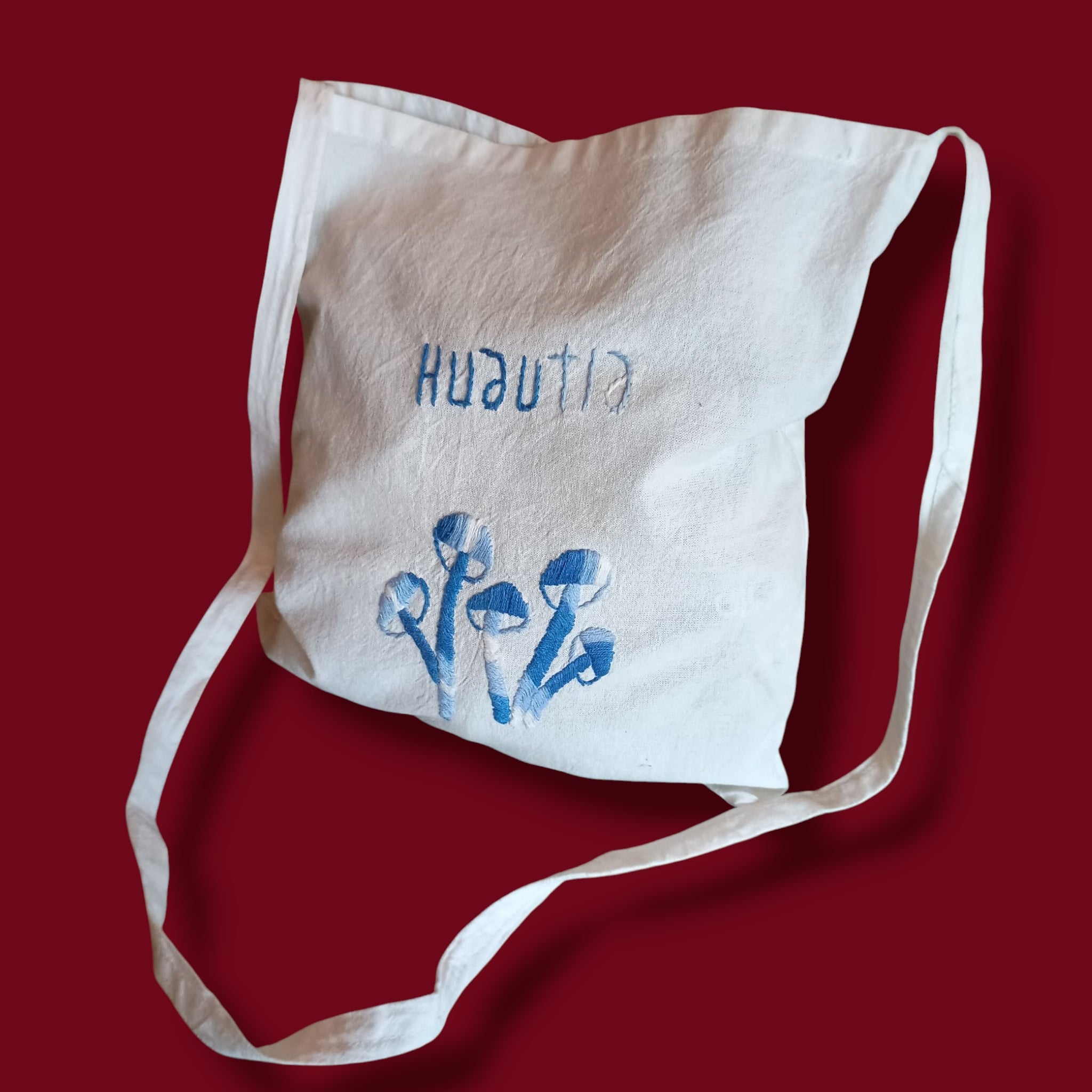 Bolsa pequeña de manta con bordado "HUAUTLA"